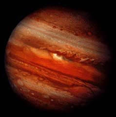 Ο Δίας είναι μια τεράστια σφαίρα σκόνης με έντονες διαταραχές στην ατμόσφαιρα των οποίων αποκορύφωμα είναι η περίφημη κόκκινη κηλίδα, η οποία δεν είναι παρά μια φοβερή καταιγίδα που πιστεύεται ότι δημιουργήθηκε πριν από περίπου 300 χρόνια.